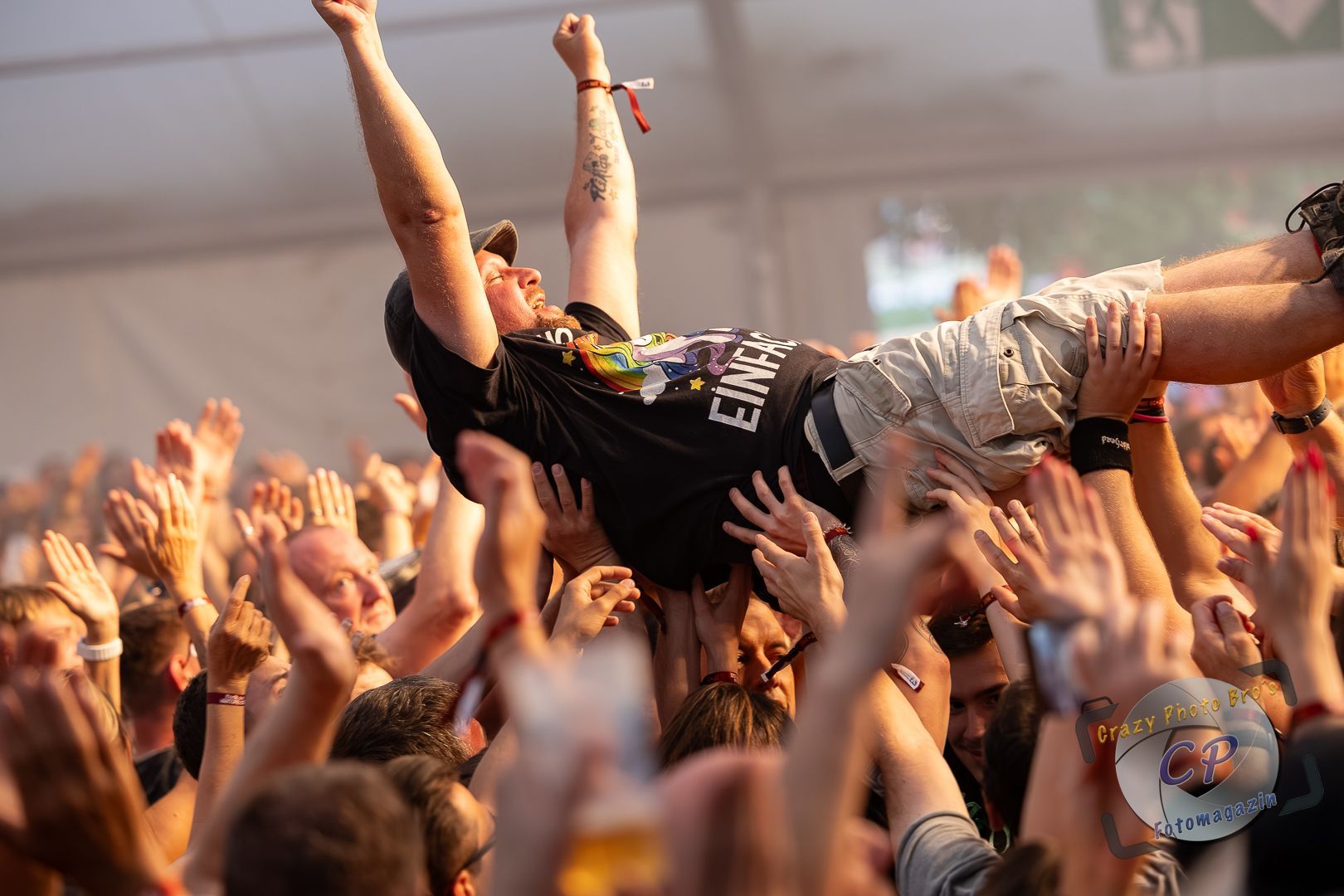 Bei Klassikern wie „Six Feet Under“ bebte das Zelt, doch der absolute Höhepunkt de Abends sollte zum Finale folgen. Beim finalen Song „Raise your Glass“ ließ sich Hannes im Schlauchboot über die Menge tragen– einmal quer durchs Zelt, über die Hände der Metalheads hinweg. Ein toller Moment, der das Festival mit einem rauschenden Finale beendete!