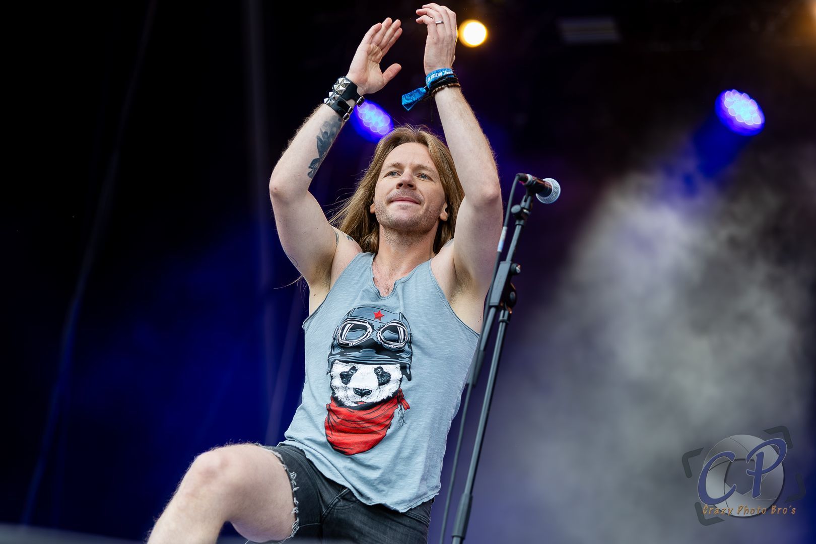 Um die müden Metalheads zum mitmachen zu bewegen, verteilte Sänger "Titan Fox" bereits zu Beginn seine goldenen Taler. "Dr.D" schwang seinen Hammer zu "Kingdom of the Hammer " und gab der tobenden, jubelnden Menge das Signale zum ausrasten. Wir hatten das Vergnügen die Band schon vor dem Festival vor die Linse zu bekommen. Hier war es zwar eine kleinere Veranstaltung aber doppelt so heiß und die Band an sich etwas gebremst. Dies konnten sie nun wieder ausgleichen. Denn sie konnten Vollgas geben. Schließlich war es noch bestes Wetter.