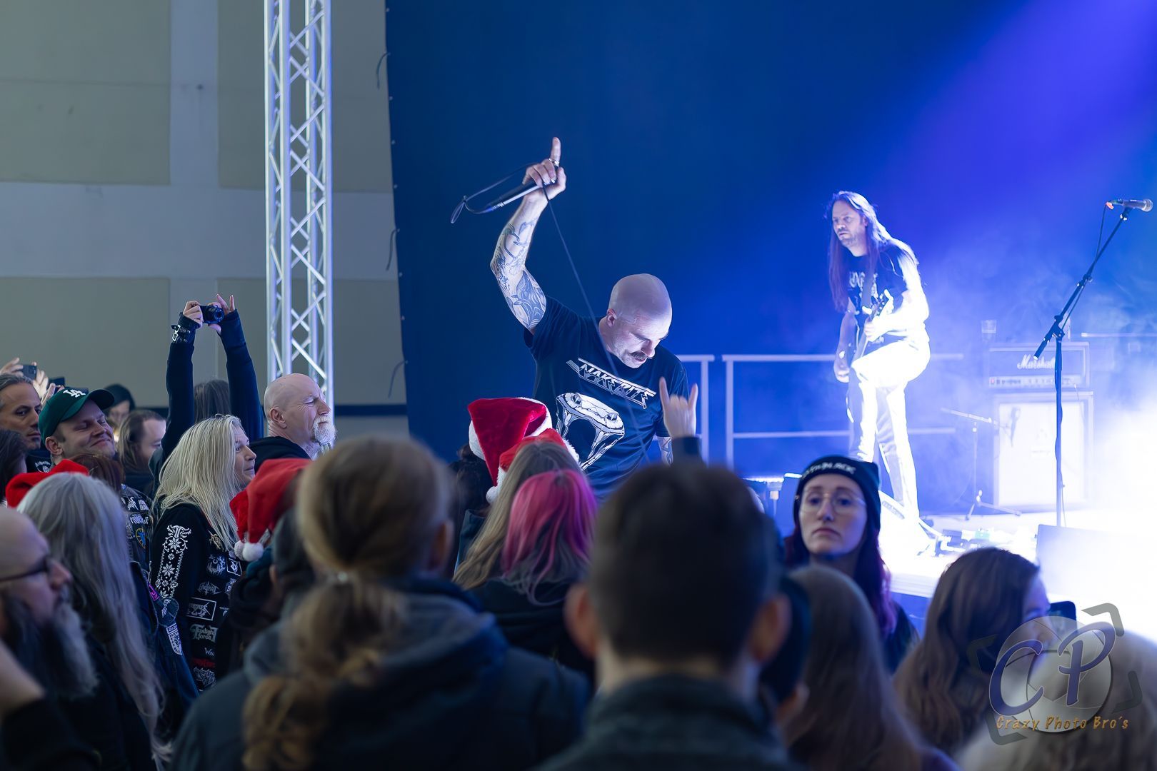Nach deftigem Pagan Metal ging's dann fast nahtlos mit Power Matal und der Band "Terra Atlantica" weiter. Piraten Power Metal mit absolutem Mitmachfaktor. Die Jungs gaben Gas und machten wirklich Spaß. Wir müssen an dieser Stelle vielleicht mal erwähnen, wir kannten die Band vorher nicht und wenn uns jemand von Piraten Metal erzählte war das meistens "Alestorm" oder "Mr.Hurley". Aber wie so oft, gibt es Begegnungen im Leben die einem im Gedächtnis bleiben. Und "Terra Atlantica" werden es auf jeden Fall. Ihr Set starteten die Jungs mit "Across the Sea of Time" gefolgt von "Quest into the Sky". Metalparty in der Stadthalle in Runkel. So soll es sein und so war es auch. Und nahm vorallem auch keine Ende. Denn wenn man schon das Thema "Piraten" in Verbindung mit Power Metal am Start hat, belässt man es bekanntlich nicht nur bei einer Band. Denn nach "Terra Atlantica" folgte "Fellowship", welche vom Konzept her sehr ähnlich waren (mit ein paar Drachen noch mit im Gepäck) und ein ebenso starkes Power Metal Set mit Hit wie "Glory Days" und "The Bitter Wind" zum Besten gaben. An dieser Stelle muss auch mal erwähnt werden, beide Bands hatte nicht groß was an Bühnenaufbauten mit am Start. Sie überzeugten mit Stimme, Musik und ihrem ganz eigen Stil den Power Metal zu präsentieren. Bei den Fans und uns kam es sehr gut an. Doch auch als großer Power Metal Fan darf es ab und zu auch mal etwas anderes sein und so wechselte das Genre für eine Band, bevor es wieder zum gewohnten Stil von Tag 2 des "No sleep after Xmas Festival" weiterging.