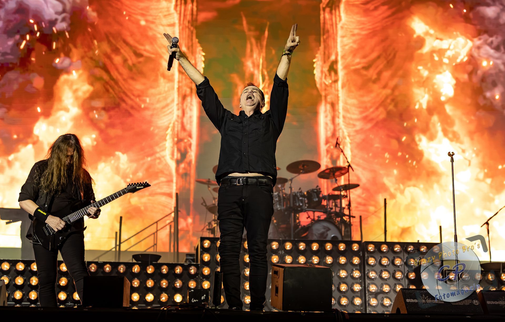 Emotional allerdings wurde es bei dem Song für den 2023 verstorbenen Band Kollegen „West“. Bei „Gott muss ein Arschloch sein“ wurden hunderte Pappköpfe auf dem die Maske von „West“ abgedruckt war in die Luft gestreckt und die Metalheads sangen alle mit - Gänsehaut pur und die Emotionen nahmen ihre Lauf. Auch uns ließ dies nicht kalt. Auch wir haben eine Zeit mit "West" erlebt und sind heute noch total geschockt und tief traurig das er nicht mehr unter uns ist. Und wie die letzten Male schon, vergossen wir in Gedanken an diese schöne Zeit mit "WEST" die ein oder andre Träne.